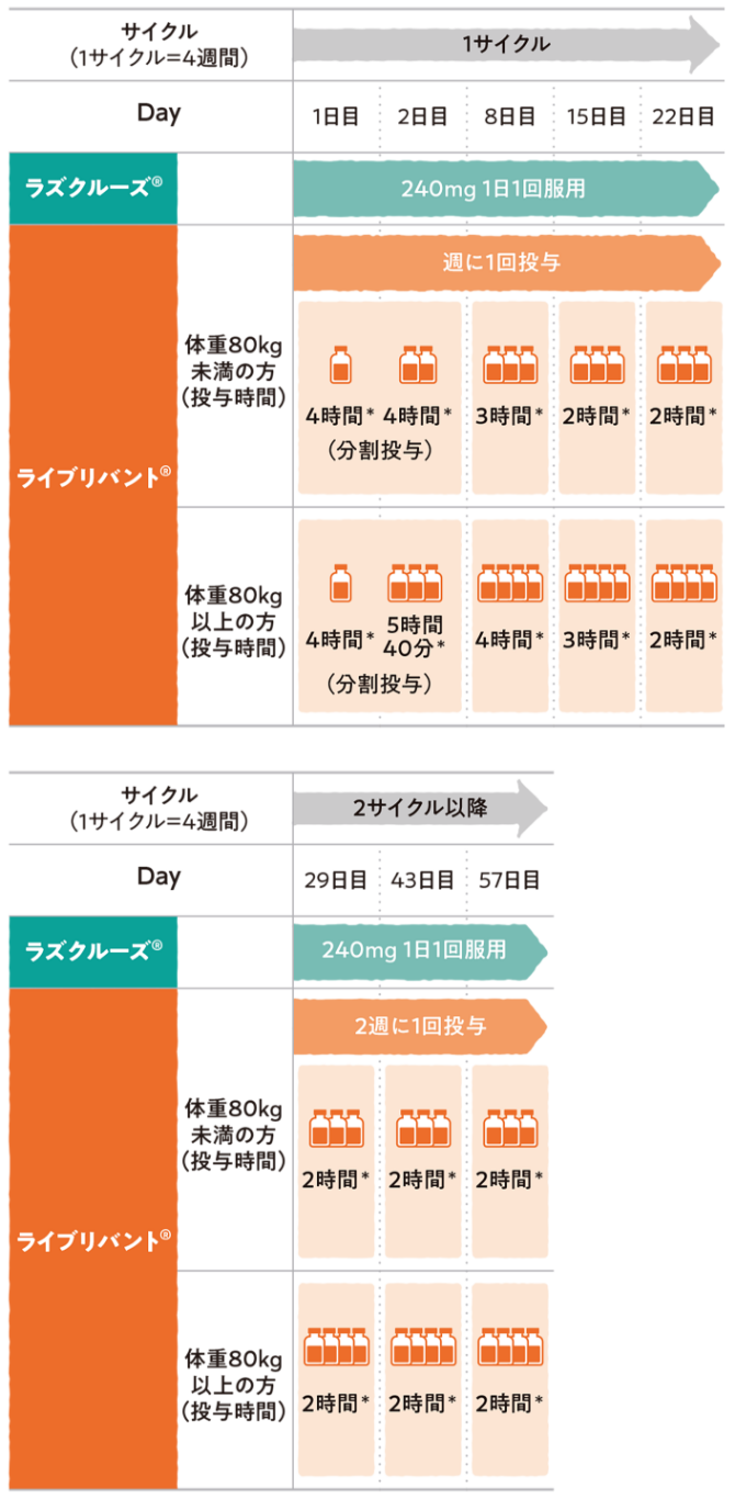 ライブリバント®とラズクルーズ®の併用療法のスケジュール